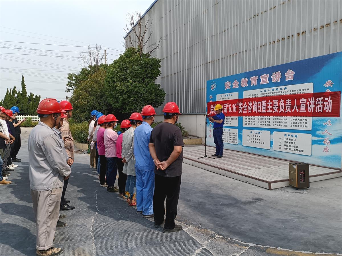 董事長陳青山針對生產場所作業特點,多角度宣講了安全生產知識和事故危害的預防措施,警示員工不要違章操作、管理人員不要違章指揮,切實從安全發展出發,確保責任落實到部門、到班組、到崗位,保證“人人講安全、個個會應急”。
