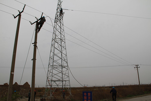 4月15日下午,隨著35KV東管線改造的第一根導線順利裝設,標志著我公司輸配電施工水平又邁上了一個新的臺階。 35KV東管線改造工程是我公司為解決徐南公司生產經營和居民生活用電緊張而實施的一項便民工程,技術要求高,施工難度大。為此,公司領導高度重視,從各供電所挑選精兵強將,組織了40余人的施工隊伍,公司副書記、副經理盧明生、副經理袁慶國親臨現場,指導施工。經過全體干群努力奮戰,首次成功架設了35KV線路2.1公里,近30米高的角鋼電力鐵塔。(政工 朱兵)