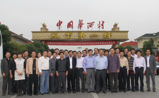華西村多業并舉,2009年銷售收入500多億元,村民人均創稅收48萬元,村年可支配資金35個億,村民戶均擁有資產100-1000萬元,每戶擁有住房面積450-600平方米,每戶擁有小汽車1-3輛??康氖且詤侨蕦殲槭椎拇甯刹砍八季S、開拓進取和以身作則、模范行動調動群眾積極性,帶領大家共同致富;靠的是認真干成事、團結干大事和不懈怠、不畏難、不猶豫、不停滯的精神。(司宣)