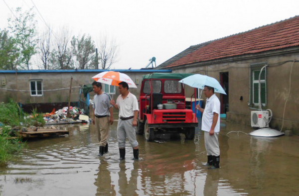 7月9日上午一上班,宋跳農場場長趙懷忠帶領任志明、駱功勛、孫習年、于懷前等同志檢查場區和居民區。在整個暴雨過程中,居民區房屋沒有發生險情,但地面積水較多,對個別居民用電不符合規范的,要求立即整改。清源水泥制品廠的石棉瓦大棚局部有坍塌危險,該場當時就下發整改通知單,限期7月20日前完成。農戶棉花地局部受淹,農田積水于當天下午基本排掉。場區基本沒有積水,但辦公室在暴雨過程中有漫水現象。職工上班后,清掃辦公室衛生,陸續恢復正常辦公。(任志明)