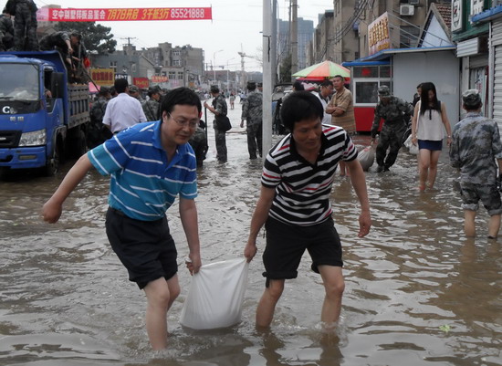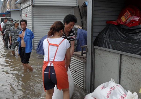 近日,面對百年一遇的特大暴雨,巨龍市場職工吃住在市場,全力進行防汛排澇。