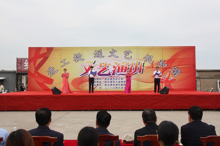 11日下午,灌西職工文化廣場人頭攢動,氣氛熱烈,“進工投送文藝促和諧”文藝演出在此舉行。此次演出由市總工會、連云港市工投集團主辦。市總工會副主席陳健、工投集團公司工會主席戴鴻鳴、灌西投資公司領導及職工群眾1000余人觀看演出。