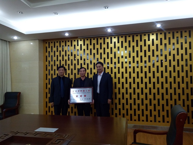 本次測評專家組一行由連云港市檔案局周海濤副局長率領,集團公司總經濟師陳如軍陪同。投資公司黨委副書記、紀委書記、工會主席王保平首先帶領測評組一行對公司榮譽室,綜合檔案室進行了實地查看設施、隨機抽查檔案。專家組在全面了解我公司檔案室的設施設備、檔案用房、檔案數量后,按照《江蘇省機關團體企業事業單位檔案工作規范》的要求,召開碰頭會,從組織管理、基礎業務、信息化建設、開發利用等四個方面對我公司的檔案工作逐項進行評比后,測評組一致認為我公司檔案室符合省三星級檔案工作規范標準。