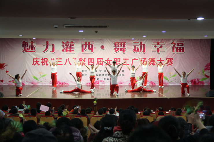 3月8日下午,灌西投資公司第四屆“魅力灌西•舞動幸福”廣場舞比賽在灌云縣臨港產業區管委會禮堂舉行,由公司各單位的女工組成的8支代表隊參加角逐,廣大女工用婀娜的舞姿和精彩的表演慶祝國際“三八”婦女節的到來,觀看比賽的職工群眾有400余人。