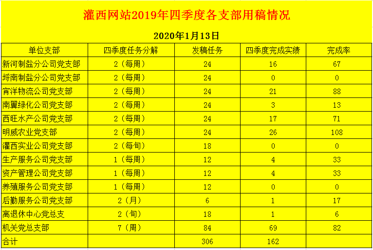 灌西網站2019年四季度各支部用稿情況