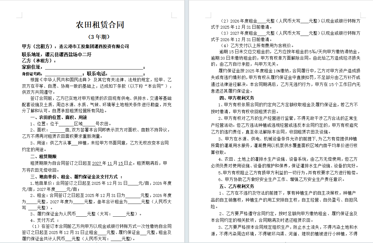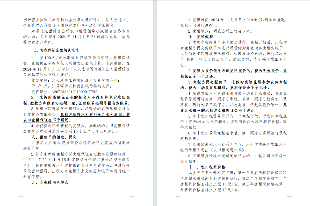 灌西投資公司2024年到期農田公開競租公告
