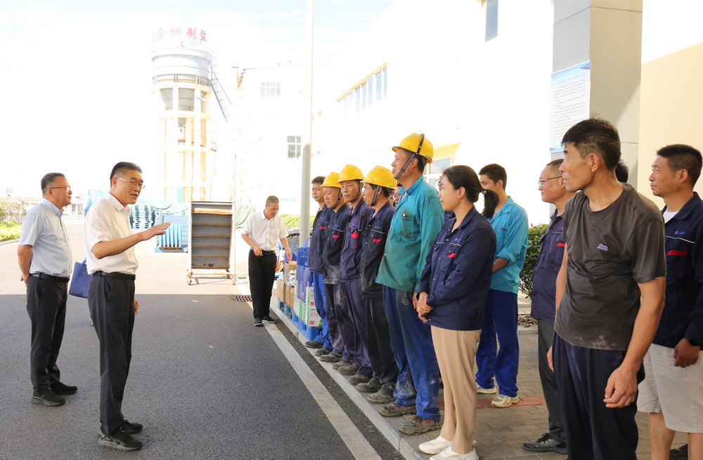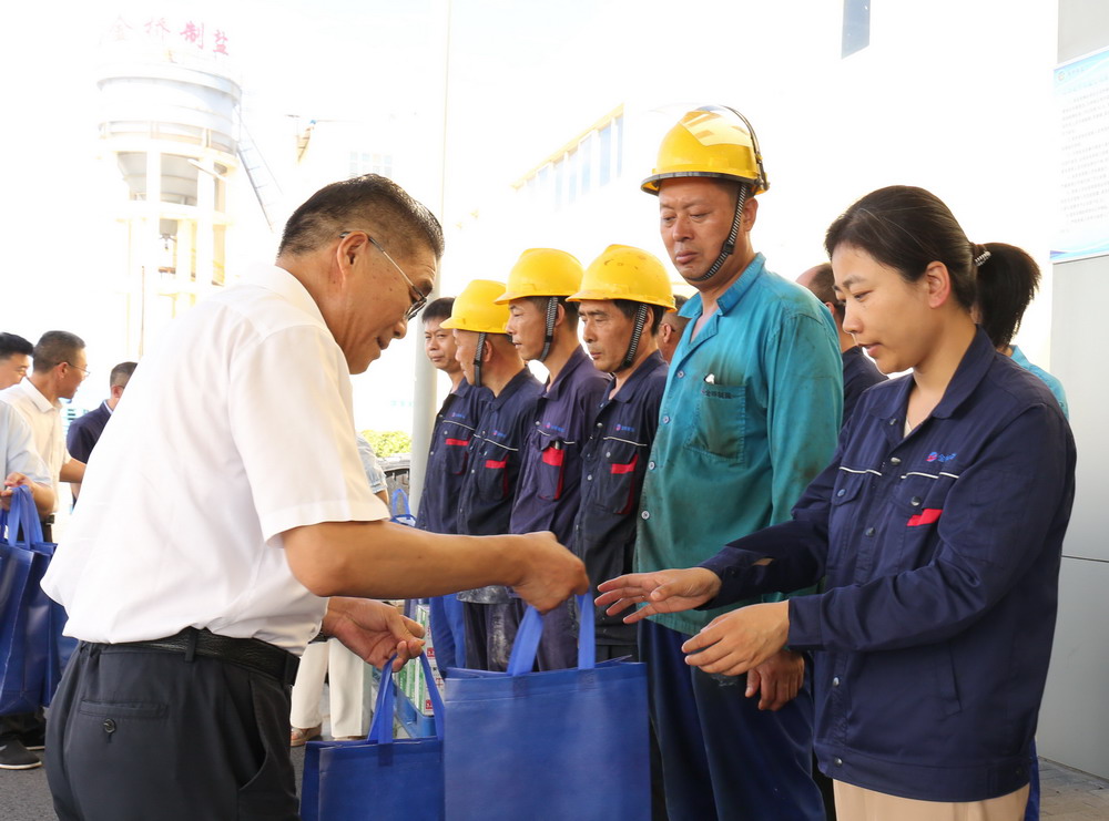 78日,集團公司副總經理劉承志來金橋制鹽公司“送清涼”,走訪慰問堅守在高溫崗位的一線職工。