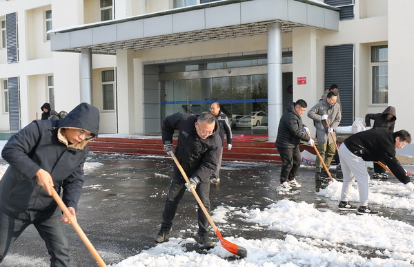 在公司領導的帶領下,大家帶帚、不畏嚴寒、士氣高漲,在確保自身安全的情況下,一起清除廠區內及周邊區域道路的積雪積冰。在掃雪除冰過程中,公司男同事們揮動鐵鍬奮力鏟除路面積雪積冰,女同事也參與其中干勁十足,忙碌的身影構成了一道亮麗的風景線。雖然室外溫度很低,但大家勞動的熱情和團結的力量讓這個瞬間變得格外溫暖。