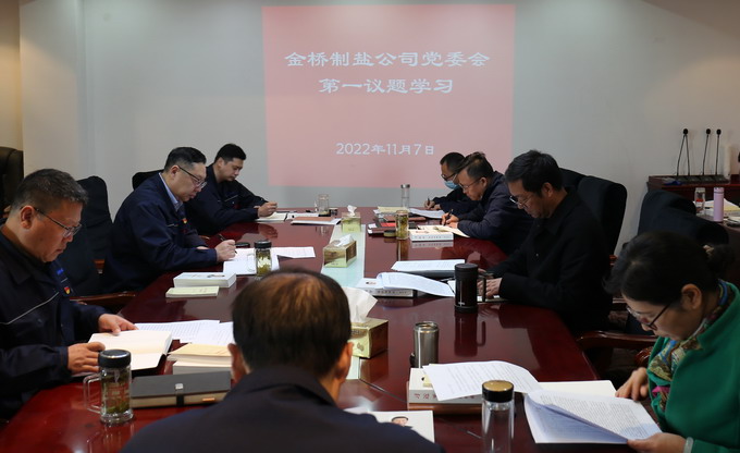 11月7日,我公司落實“第一議題”學習制度,學習習近平總書記論:“學習貫徹黨的二十大精神”、“奮力奪取全面建設社會主義現代化國家新勝利”、“同心共筑中國夢”。會議由公司黨委書記、董事長朱桂玉主持,公司黨委班子參加學習。(金宣)
