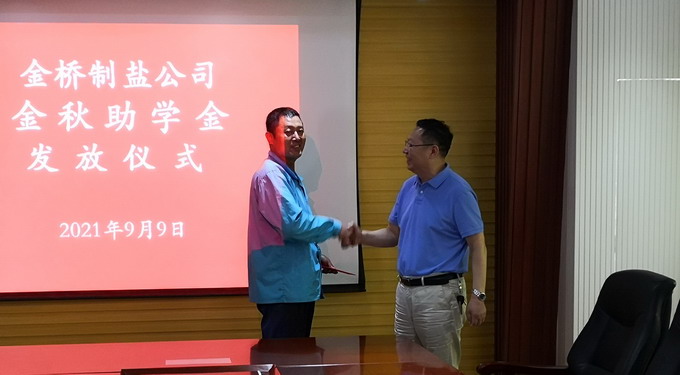9月9日下午,我公司舉行金秋助學金發放儀式,公司黨委書記、董事長、總經理朱桂玉為受助學子家庭發放助學金,公司黨委副書記、紀委書記、工會主席曹開明主持發放儀式。