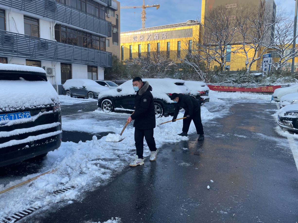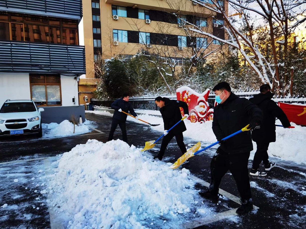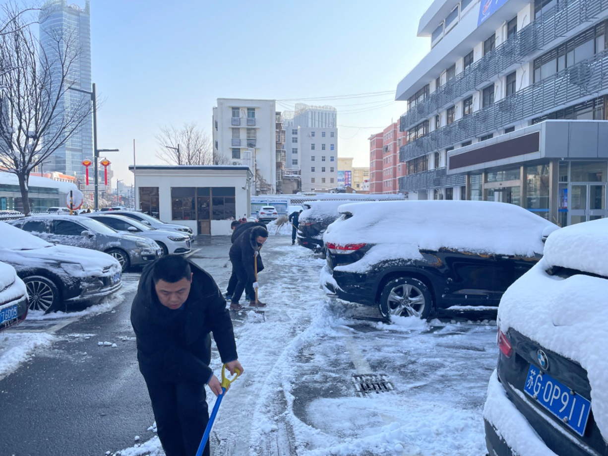 預判及時準備足。早在暴雪預警發布之初,公司領導班子便高度重視,迅速做出預判,對辦公區域內可能發生安全隱患進行了一一排查,同時,綜合管理部立即啟動應急機制,在全市除雪物資緊張前,備齊了鐵鍬、雪鏟、掃帚等一應工具,及時儲備了數百公斤的融雪劑,迎戰風雪做好了充足的物質保障。