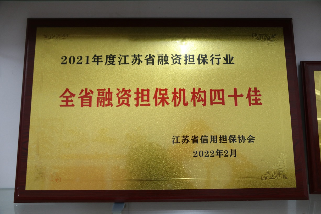 被省擔保協會評為“江蘇省2021年度融資性擔保機構四十佳”。