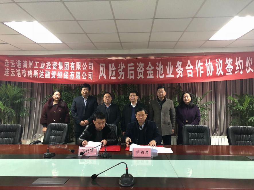 125日,格斯達擔保公司與海州工業投資集團舉行“風險劣后資金池業務合作”簽約儀式,集團公司副總經理楊國新,海州區委常委、開發區黨工委書記徐雪峰等領導出席了簽約儀式。