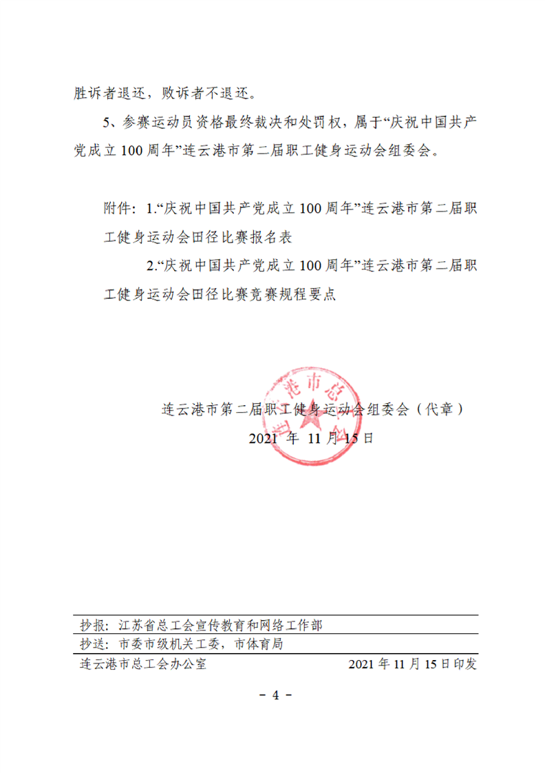 連云港市第二屆職工健身運動會田徑比賽的補充通知