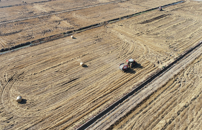 連日來,在青口公司大新農場已收割完的田地里,4臺大型機械正在收割后的稻田里來回穿梭,每過短短幾分鐘時間,機器就能“卷”出一捆打包好的秸稈。壓實打捆后的秸稈錯落排放在田間,成了豐收后的新景觀,也是我公司生態農業發展跨步向前、職工群眾生活環境持續向好的縮影。