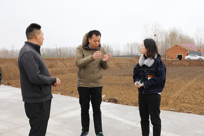 4月2日上午,冒著淅瀝瀝的春雨,青口公司副總經理許太冬帶領樊家選、趙華兵兩位技術指導小組成員,來到海頭鎮龍河村新復墾的240畝土地現場,與結對聯建的龍河村村委成員熱切交流,為新復墾的土地發展規劃出謀劃策。