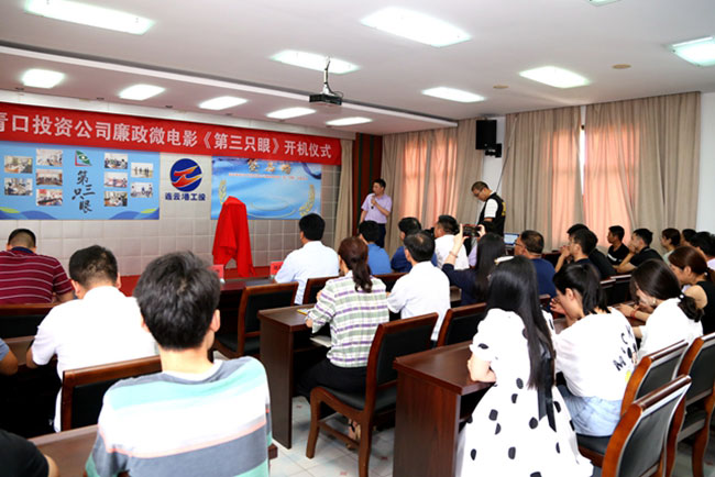 7 月 10 日上午,青口公司隆重舉行廉政微電影《第三只眼》開機儀式。集團公司紀委副書記王建松、 青口公司黨委書記胡傳法及全體班子成員、機關全體管理人員、劇組人員參加了本次儀式。