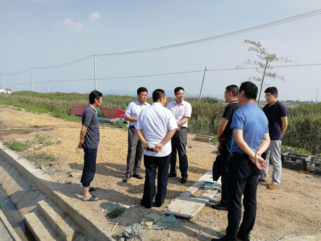 ? ? ? ?調研團一行首先到養殖大戶劉英軍的養殖池塘查看養殖現狀,隨后到三洋排水站查看養殖池塘進排水水系是否有序暢通。