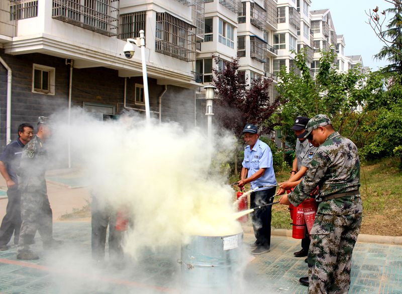 活動先在公共場地,由專業安全員講解消防常識和滅火器材的使用方法,并現場演示如何正確使用滅火器滅火。后選取7號樓開展突發火災的人員疏散、撲滅火災模擬演習。在演練結束后,專業消防技術員指出演練過程中的不足和樓房滅火方法技巧,為我公司今后的消防應急措施提供寶貴經驗,真正做到有備無患、防患于未“燃”。