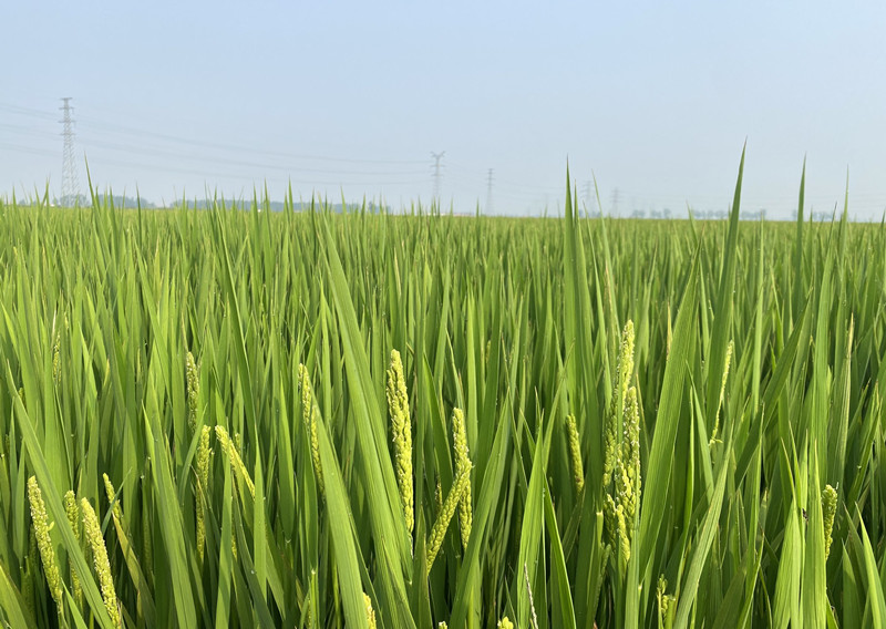 近日,大新農場1000余畝自種自營水稻示范區水稻長勢喜人,田野上稻花飄香。正值水稻抽穗揚花期,農場管理人員根據重要農時到地頭查看苗情,目前抽穗率達到百分之六十,預計中旬抽穗完成。(王 璐)