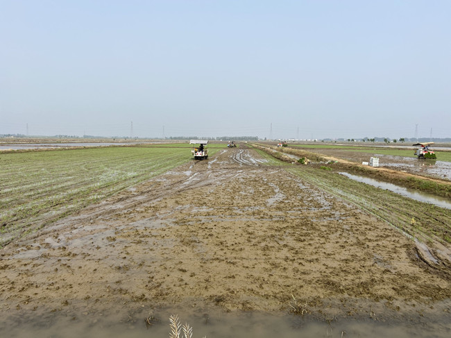 春爭日來夏爭時,莊稼宜早不宜遲。在經過了前期的育秧、整地、施肥、除草等一系列工作后。6月1日,大新農場秉著“快插秧、插好秧”的原則,人機齊上,正式拉開今年水稻插秧的序幕,三家條田組同時進行機械插秧作業。根據目前天氣良好的情況下,一臺插秧機每天能完成40畝的插秧工作,目前已進場作業的插秧機共13臺,農場按照插秧計劃續時推進插秧作業,確保在6月20日前完成水稻插秧工作,為奪取今年水稻豐收打下堅實基礎。(葛蘇)