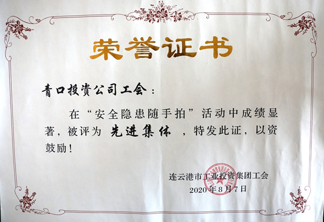 青口工會獲集團公司“安全隱患隨手拍”活動表彰