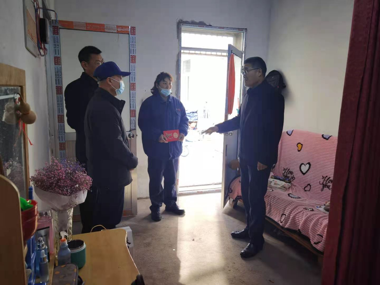 22日上午,集團公司工會主席劉承志一行到我公司走訪慰問困難職工,公司總經理韓立新,工會主席袁忠陪同走訪慰問。