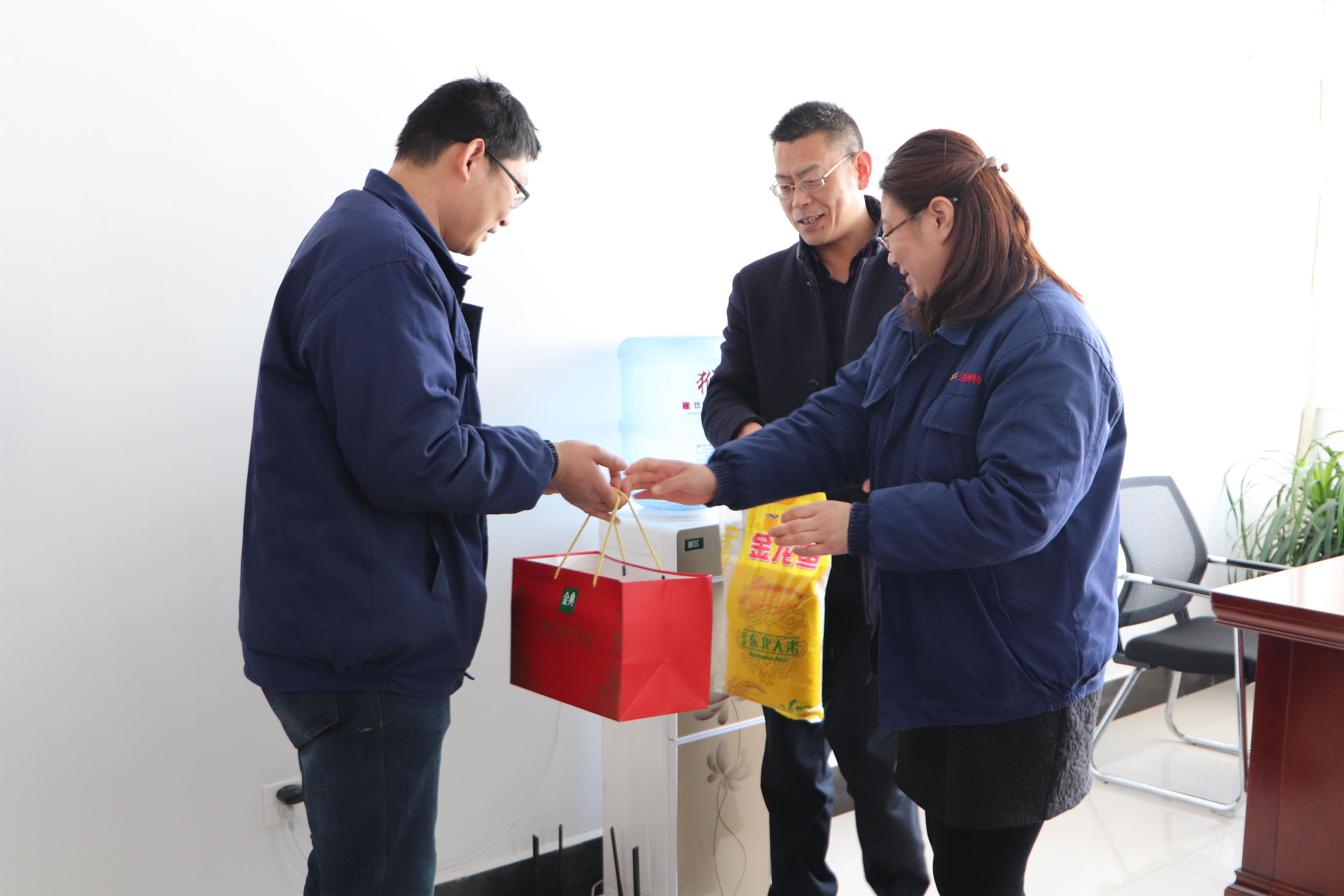 131日下午,公司黨支部書記鄒德兵、副總經理王爽芳、工會主席袁忠一行走進困難職工孫英山等家中,為他們帶去節日的祝福和公司的關懷。