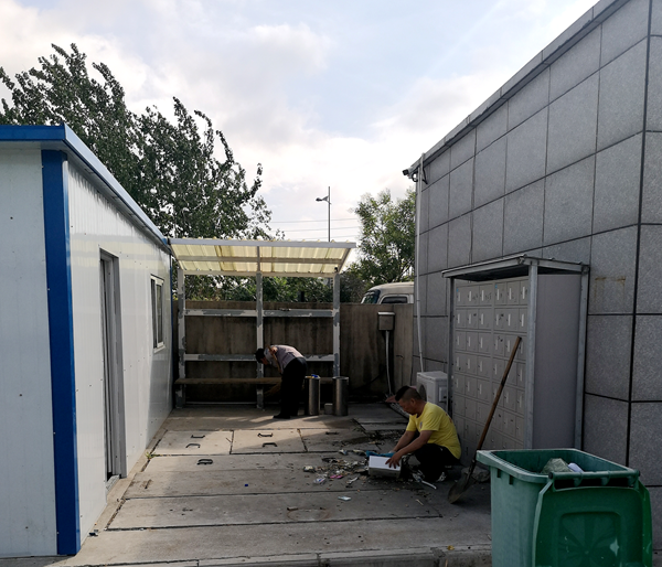 最近公司因為環保需要,在吸煙區建了一座20平方米的環保設施用的小房子,剛剛建好,施工物品和垃圾與吸煙區的煙頭混雜在一起,衛生狀況很不好。