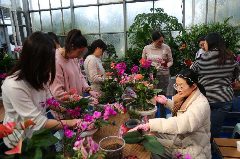 ? ? 活動現場,花香四溢,沁人心脾,園藝大師趙老師向女職工們介紹了花卉種類、花枝修剪、造型搭配以及花木養護等方面的知識,同時強調了插花的操作技巧,并現場示范多種造型的插法,將融入大自然理念的插花藝術生動地展現在大家面前。在花藝老師的悉心指導下,廣大女職工們大膽發揮自己的想象力,通過自己靈巧的雙手,將修剪和整枝的蝴蝶蘭、花燭、百合等多種花材,根據不同的色彩、形狀有層次地搭配在一起。