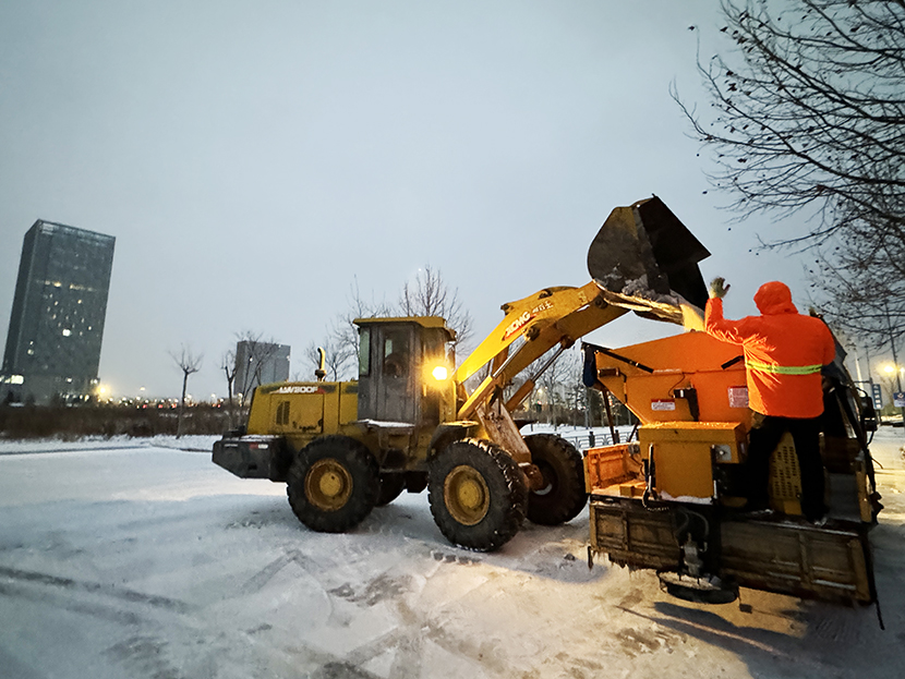 ? ? 此次掃雪除冰行動,采用人機結合方式,調派鏟雪車、裝載機等機械設備,對東方大道、黃海大道、花果山大道、242省道等主要干道人行便道、交叉路口,新海連大廈、火車站東站等重要地段的路面冰雪進行突擊清理;對各條干道的橋面及馬山立交橋、新光路下穿立交等坡度路面鋪灑氯化鈣除雪劑融化冰雪。