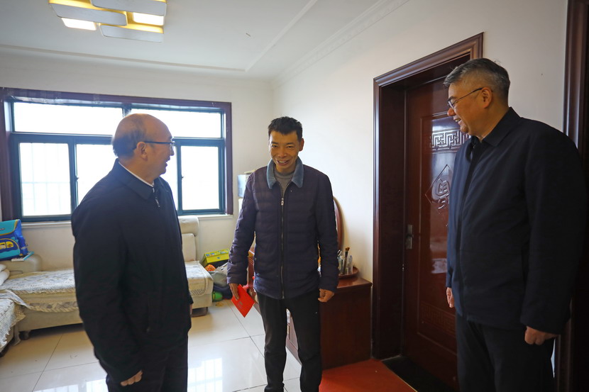 ? ? ? ??丁銳先后來到了困難職工杜秀文、徐松保、張明雙,困難黨員王愛軍等家中,為他們送去米、油等生活用品和慰問金。每到一戶,丁銳都與他們拉家常、聊近況、問冷暖、送祝福。