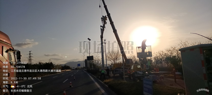 晨光微漏,凜冽的寒風吹拂,當大多數人還沉浸在溫暖的被窩、睡夢中之時,有這么一批鐵打的人,已經在寒風中登高工作了半個多小時,他們熟練的進行著路燈桿件的吊裝......“中復連眾123米運輸路線市政設施遷改工程”需要增加工程量:升級改造調尾大橋遙感設備。翔立分公司立即組織專業人員,對路燈桿拆除、切割、對接、吊裝,保質保量的完成工作,抓住一切可以承接的工程,全力以赴的沖刺全年任務。