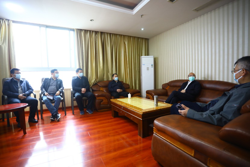進入辦公區后,丁銳一行對臨時辦公區的辦公氛圍表示贊賞,各部門門牌張貼到位,管理制度上墻,特別是疫情防控制度全面到位。同時隨機來到工作人員宿舍,檢查了內衛,對工作人員表示了慰問。