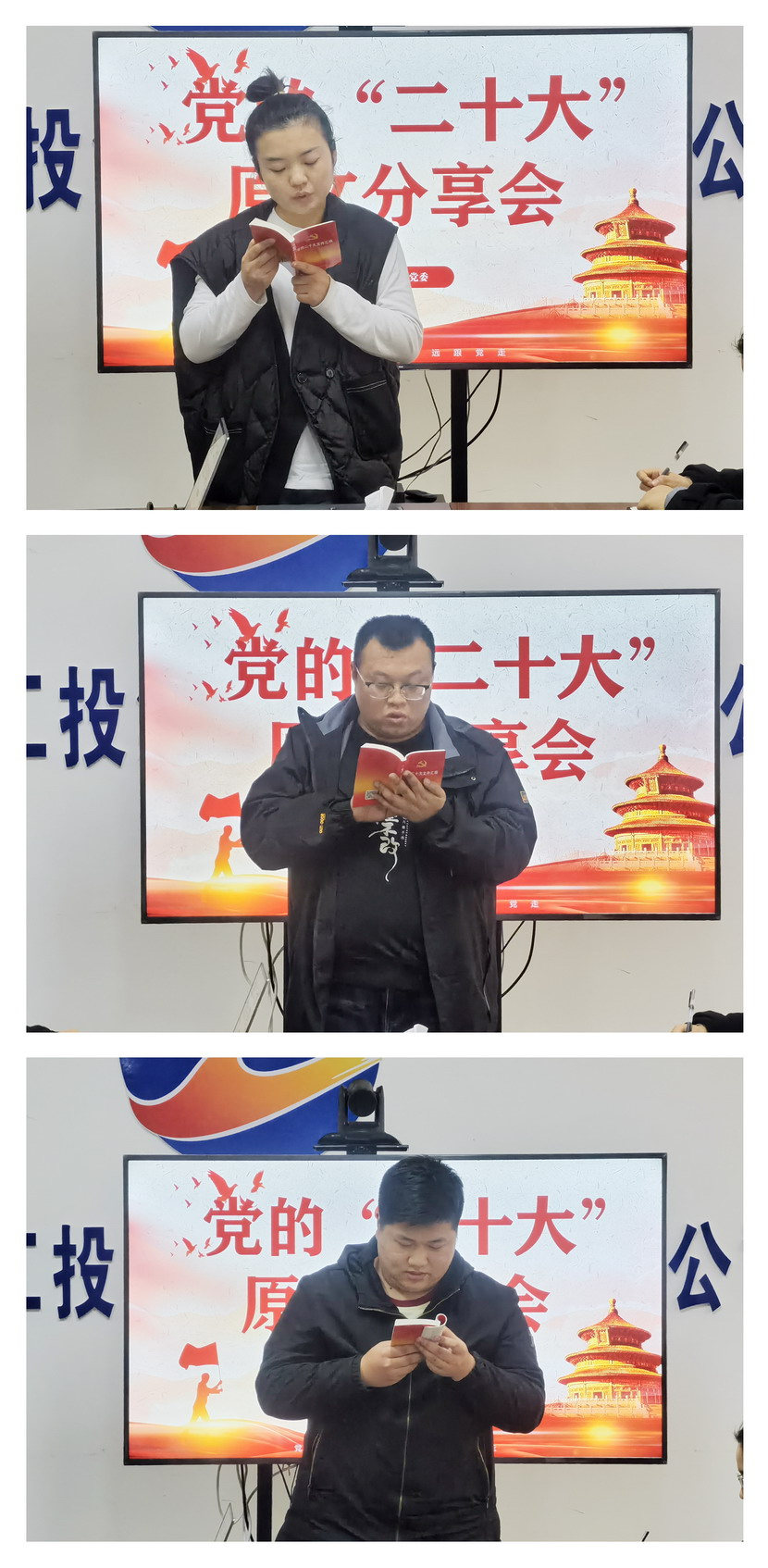 ? ? 隨后,大家集中觀看了學習二十大精神《奮斗??新的偉業》系列節目。參加學習分享會的同志們紛紛表示,將全面學習、全面把握、全面落實黨的“二十大”精神,繼續以飽滿的熱情、十足的干勁投入到各項工作中,為臺北的“兩不”目標作出新的貢獻。