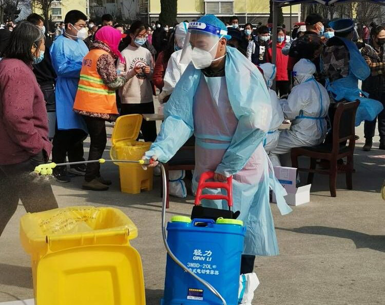霍正鋼,志愿者隊伍的一員,也是這支志愿服務隊伍中的中堅力量。他,心中有大愛,在海州灣黨支部3月7日發出“馳援社區,共同抗疫”動員令后,他第一個站出來:“疫情就是命令,防控就是責任。身為黨員,我理應模范帶頭,支持新冠肺炎疫情防控工作?!彼粌H是這樣說的,更是這樣做的,在昌圩社區每一次的核酸檢測中,他專挑“急、難、險、重”的活。比如消殺工作,這是一個體力活,需要背著足足有20公斤重的消毒液,來回不停的走動,不斷的添加消毒液。有幾次,核酸檢測從早上8點一直持續到晚上8點,足足12個小時,而消殺工作的時長都達到14個小時,不僅是檢測過程中,開始前和結束后的一小時都要消殺到位。14個小時下來,霍正鋼同志穿著密不透風的防護服,里面的衣服濕了又干,干了又濕······。當大家看到他口唇干裂的都掉了皮,問他:“你是沒有喝水嗎?”“不能喝水,忍著吧,喝水就得上側所,耽誤時間,這波病毒隱匿性強,傳播速度快,不能有一絲懈怠?!彼┖竦恼f著。