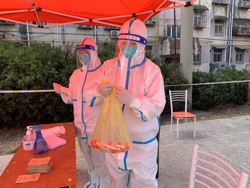 然而隨著疫情越發嚴重,小區核酸檢測員人手又緊張了起來,“我可以,這幾天我都學會了,最基本的我都會”秦英又是第一個舉手到最前線。這下她更忙了,每天凌晨三點起床做飯,五點社區報到,一直堅守到晚上八點。為了節省防護服,她一般都要等到中午2點多鐘才休息吃飯,這股毅力讓社區、街道領導看在眼里,服在心上,連一直牢騷怪話的幾個群眾也為她由衷地豎起大拇指。