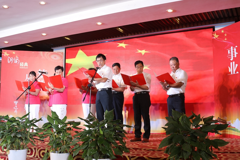 在莊嚴地國歌聲中,演出拉開了序幕。15組參賽選手用他們真摯的情感、優美的語言,歌頌新中國71年來取得的輝煌成就,表達自己對黨、對國家、對人民的熱愛?!抖Y贊新時代,賀彩我中國》,四位表演者用激昂語言帶大家回顧了今年的“大事件”,中國早已不是1842年的樣子,現在的中國有能力,更有信心來應對百年未有之大變局;在東方,有一條騰飛的巨龍,在東方,有一個巨龍的民族——《讀中國》,這就是華夏中國,讓我們在“紅旗漫卷的西風中,讀繁榮昌盛的中國”;《習近平談治國理政(第三卷)》的出版是我們繼第一卷、第二卷之后又一個人生的指路明燈,讀后感想《珍惜韶華,不負青春》中,朗誦者聯系企業發展,向大家傳述了只有要擼起袖加油干,才能“珍惜韶華,不負青春”;《不朽》,五星紅旗凝聚了奮進的力量,五星紅旗迎風飄揚,逐夢航程,書寫出不朽的豐功偉績······在臺北有一群老干部、老黨員,退崗不退休,彰顯新作為,為企業發展出謀劃策,為臺北和諧穩定貢獻力量,老黨員們帶來的詩歌朗誦為整場演出畫上了圓滿的句號。