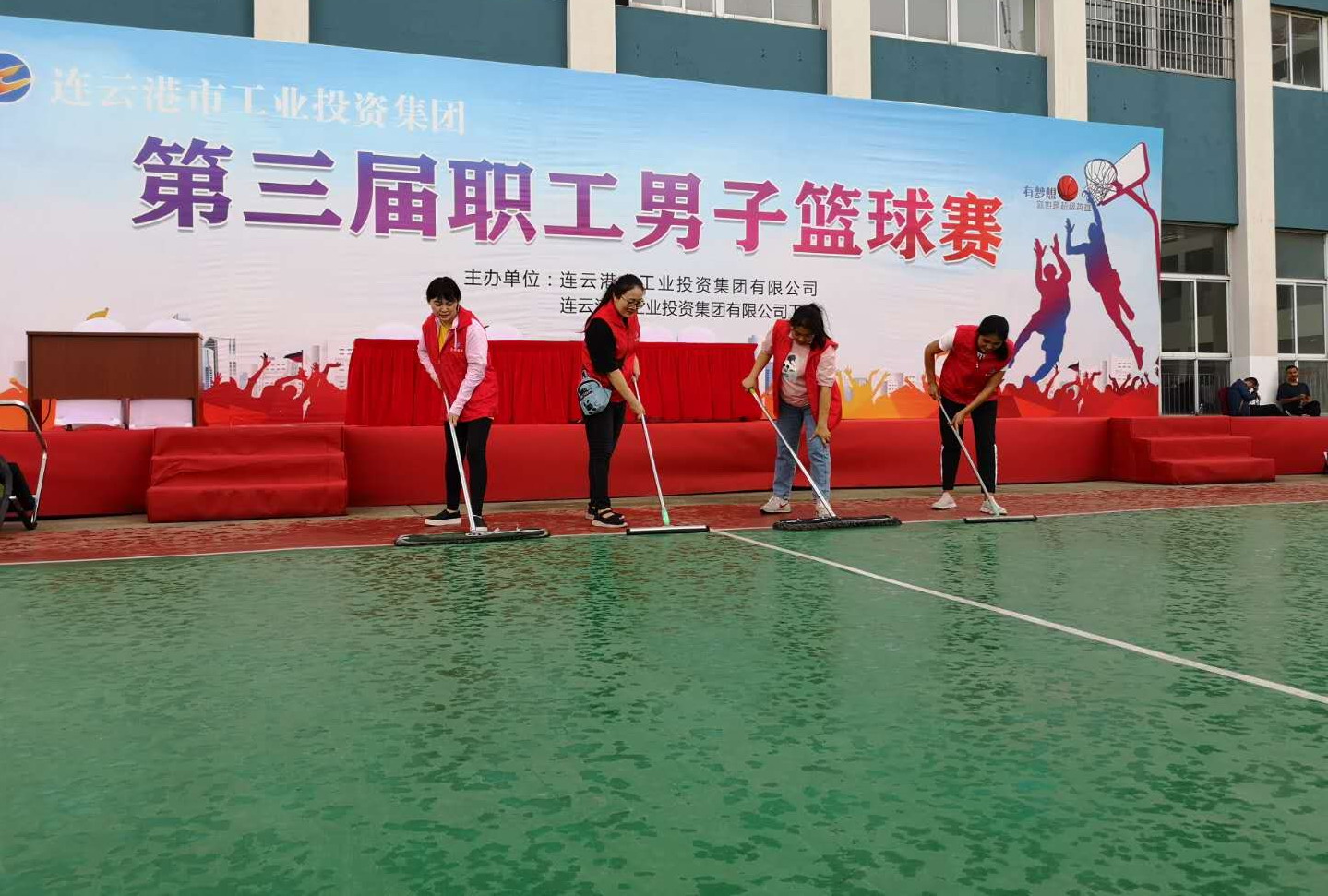 921日,連云港市工投集團第三屆男子籃球賽在臺北投資公司美多利科創園籃球場正式拉開戰幕。投資公司組織志愿者開展賽事服務活動。下午2點的比賽,我們的志愿者早上8點就已經在賽場集合完畢,進行賽前各項準備工作,下午1點不到就早早地各就各位等待觀眾和運動員入場。