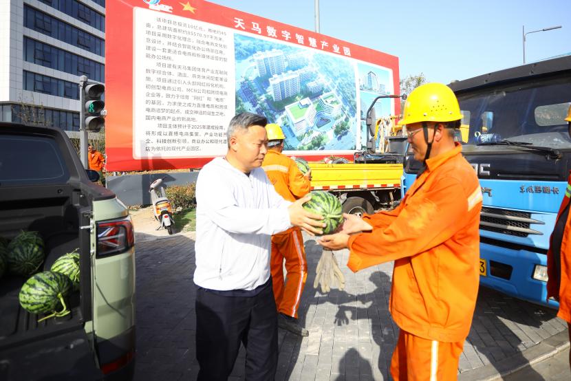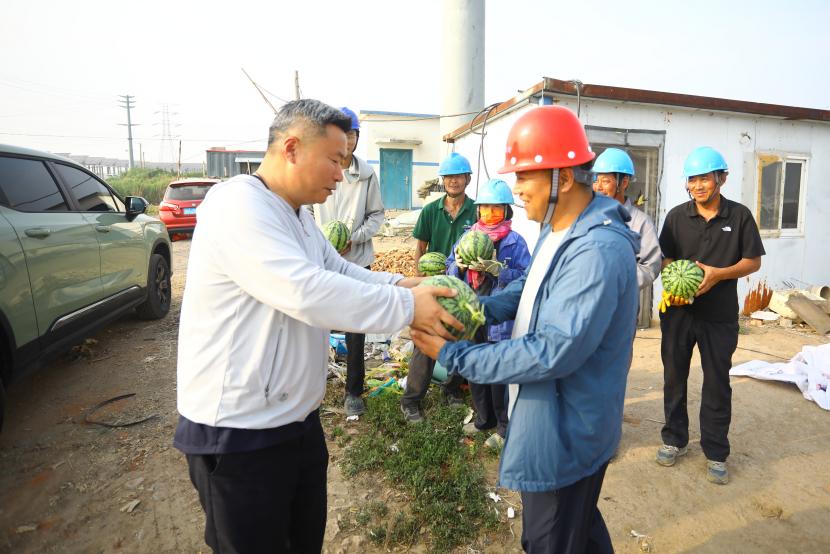 “施工現場送西瓜啦!”隨著夏日高溫持續攀升,為全力做好高溫天氣下職工防暑降溫工作,切實保障職工安全健康權益,自520日起,臺北投資公司工會精心策劃并開展“夏送清涼”主題活動。公司工會深入工程施工現場,將甘甜多汁的西瓜送到堅守在高溫崗位的職工手中,為他們送去陣陣清涼,這一暖心舉措收獲職工們紛紛點贊。