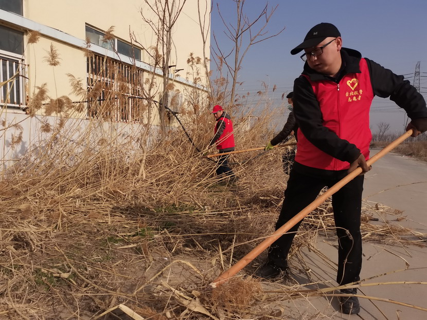 ? ? ? ? 3月4日,按照活動統一安排,志愿者們紛紛抵達各自點位開展統一活動,本次活動主要是清理公司主次干道兩邊的雜草以及各種彩色垃圾?;顒又?,身著紅色馬甲志愿者分工協作,首先由男同志們對周邊的蘆葦、鹽薅進行地毯式收割,大家揮動著鐮刀、鐵锨,干的十分起勁,顧不得漫天飛舞的蘆葦花和灰塵。女同志們負責用釘耙將割下的雜草以及死角里的彩色垃圾,摟到一起便于集中清理。在勞動過程中大家互相幫助、互相合作,很好的展現了集體的團結協作精神,有的同志手不小心被木板上的釘子劃傷了,擦干凈血接著干。經過2個小時的清理,主次干道煥然一新。