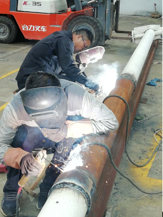 ? ? ? 因連云港石化產業基地應急截污二期工程建設需要,對影響施工區域內鈣液管道實施遷移改造,翔立分公司承接施工區域內原鈣液管道拆除、新建鈣液管道工程,該工程費用共計二十萬元。連日來陰雨連綿,為了搶抓進度,翔立分公司組建鈣液管道小組,安排施工人員住在工地的臨時辦公地,加班加點,努力縮短工期。在挖掘機配合下,小組成員合理分工,對原鈣液管道進行起挖,對新管道進行安裝,整個開挖、安裝過程,施工人員服從統一調度安排,所有人謹慎操作、盡可能減少管道損壞,各司其職,積極配合,小心搬運,認真檢視管道情況,確保施工質量。經過十天時間的緊張搶工,五百余米管道已全部改造完畢。