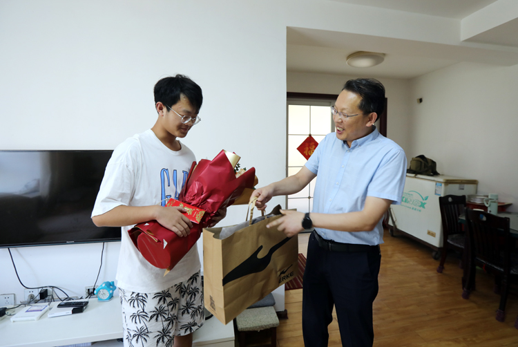 ? ? ? 投資公司黨委副書記、工會主席劉剛一行來到滕士春、侍作青、顏廷周等職工家中,向“金榜題名”12名職工子女送去祝福與慰問。每到一處,劉剛親切詢問學生學習情況,并代表公司黨政送上書包、鮮花與“祝學金”。鼓勵學生要把組織的關愛,轉化為勤奮學習、砥礪成才、感恩上進的強大動力,勉勵學子們要勇往直前,奮發圖強,學業有成,實現自身價值,將來以更優異的成績回報父母,回報企業,奉獻社會。