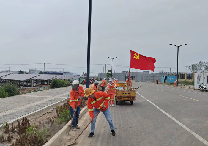 621日,該黨支部近30余名黨員在支部的感召下,匯集于新區節能一路道路兩邊。勞動現場,黨員生產骨干姚功身先士卒,無懼泥土粉塵揚起,揮汗清理,不怕臟、不怕累,不放過任何衛生死角。勞模張學軍與老黨員徐習東相互配合,打包,裝車, 及時轉運各類垃圾達50多袋,清掃路面積土近1500米長,大家分工明確,重活臟活搶著干。隊員們齊心協力,用實際行動詮釋黨員吃苦在前、勇于擔當的奉獻精神。經過四個多小時清理,主干道及周邊道路垃圾、雜草、泥土全部清理干凈,高質量完成奉獻勞動,鮮艷的黨旗在陽光的照耀下顯得格外閃亮。(楊波)