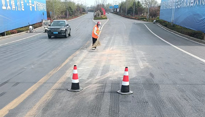 強化突擊重保潔。四月份以來完成園區大小突擊保障3次,完成橋梁排水孔疏通工作。針對管養轄區域過往大型車輛大量石子拋灑、渣土遺漏實際情況,該公司分類處置,對癥下藥,對于此類拋灑頻率較高路段,采取增加作業人員、黨員突擊奉獻、人機結合清理等形式,保證路面整潔,消除安全隱患。