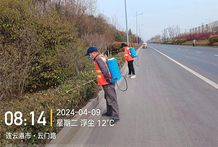 強化修剪重養護。該分公司以防為主,防治結合,全面開展春季病蟲害防治工作,對整個園區綠植面積 62萬平方進行全面施藥。序時開展園區綠化帶除草工作,四月上旬園區云港路,祥和路,金港路綠地雜草、落葉清理,清理面積25萬平方。積極打造綠化養護樣板路。突出祥和、云港重點路段,2班全面對祥和3期利用4天時間對所轄綠化帶采取人機結合全面除草,并根據苗木的長勢,在正常養護工作的同時,開展春季病蟲害防治。定期安排補水,日澆水量50余立方,有效的促進苗木生長,全面掀起大干二季度工作熱潮。(劉永)