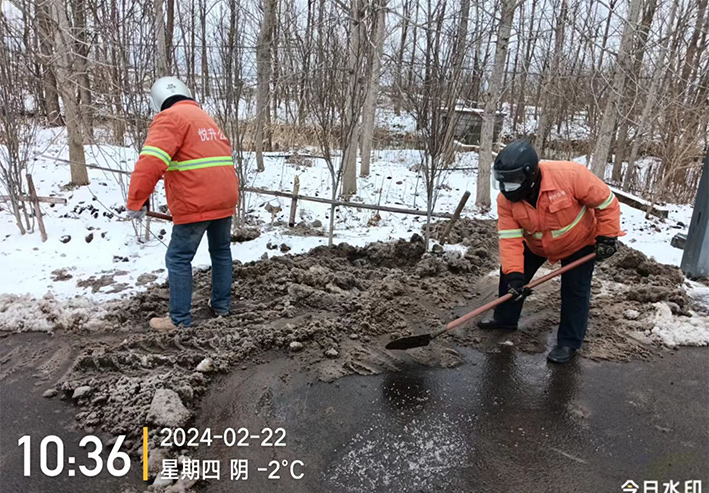 寒雪無情,人間有情,該公司黨員干部齊上陣,60余人奔赴道路一線開展清冰掃雪工作。按照“先主后次、先內后外、先陡后平、先重點后一般”的順序,對轄區內主干道、幸福家園周邊等地的冰凍積雪進行集中清理。在幸福家園小區清掃現場,大家不懼嚴寒、干勁十足,手里拿著鐵鍬、掃帚等清掃工具,相互配合,對路面上的積雪、積冰進行清掃鏟除,經過大家持續奮戰,冰雪覆蓋的路面被打掃的干干凈凈,為小區居民的出行安全帶來了保障。