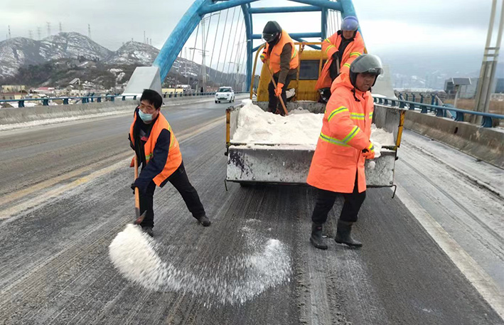 晚上7時,綠化,保潔班組聞雪而動,搶抓作業時間,連夜對管轄區內燒香河大橋、云港路、瑞和路橋梁坡道、結冰路段進行撒鹽融雪融冰作業,他們頂著寒風、冒著風雪,不停揮動手中的鐵锨,任憑風雪打在臉上,始終堅守在除雪第一線,他們是雪天最美的風景線,更是這個城市最樸實最可愛的守護者。