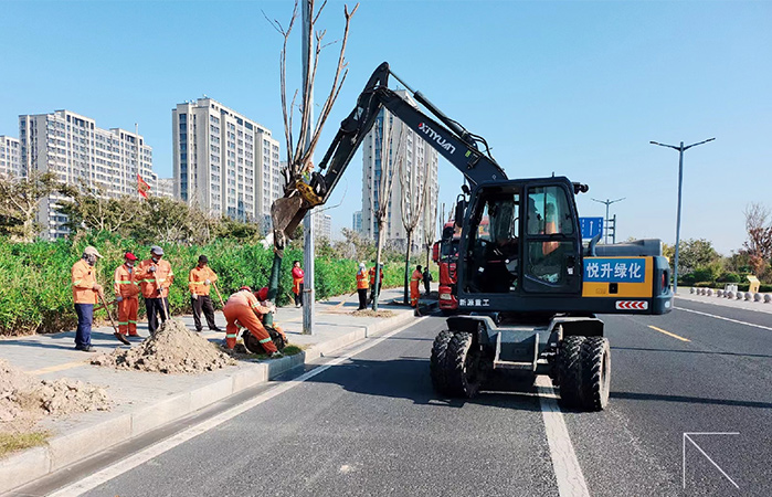 近日,為全面落實“大干一百天,沖刺四季度”勞動競賽活動,綠化分公司全體干群加強對外銜接,承接徐圩新區海綿城市綠化整治行道樹換植工程,在燈塔路、合作路等地共計栽植欒樹306棵。為決勝四季度再添一“筆”新功。