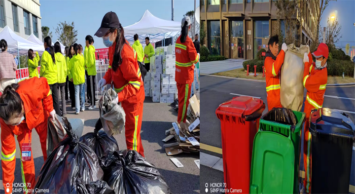 1022日凌晨3時,保潔公司40余名保潔先鋒兵鋒六路安全序時趕赴賽事保障區域。道路現場,保潔衛士無懼深秋徐圩海風吹透身體,兩人一組,揮動手中掃把,徒手清掃各個活動區域積土1000多米長,撿拾海風吹落各種垃圾100余包。比賽現場,保潔人員無視秋日暖陽照曬,及時有效清理運動員丟棄飲料瓶300余包,清理打包各種餐盒2000多個,轉運各種垃圾200多車。大家齊心合力的工作精神與賽事活動融入一體。